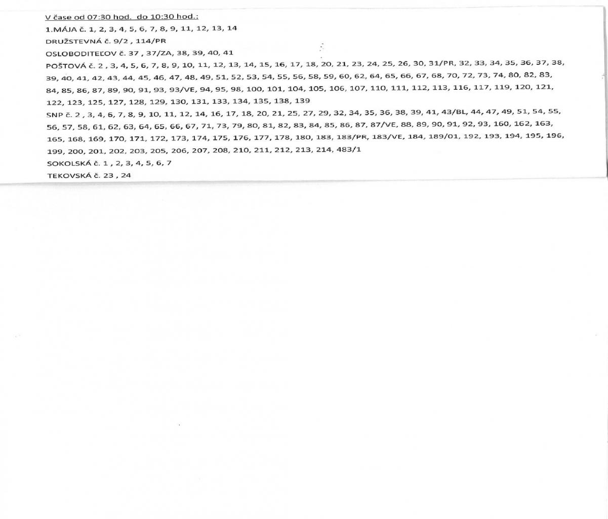 Západoslovenská distribučná , a.s. oznamuje občanom, že dňa 18.5.2021 budú v čase od 7:30 hod. - 10:30 hod. bez dodávky elektriny nasledovné ulice: